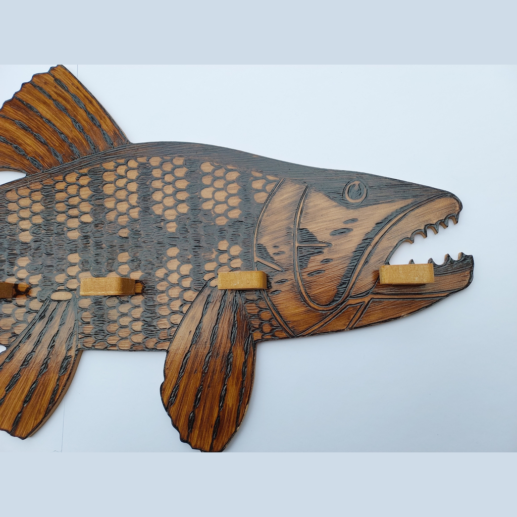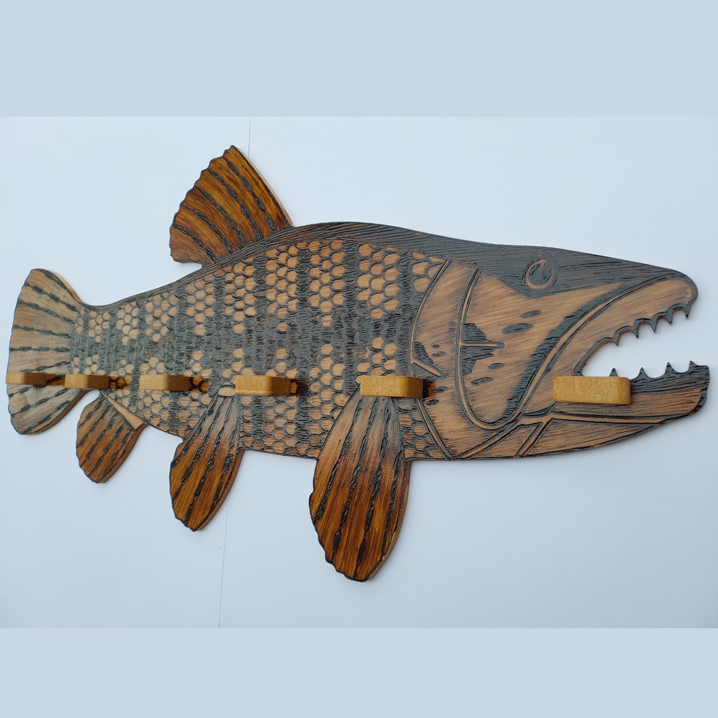 O modelo Traíra une design robusto e acabamento artesanal em chapas de madeira de pinheiro, semelhante ao MDF, porém muito mais resistente, pensado para quem valoriza organização e estilo no ambiente de pesca ou lazer.