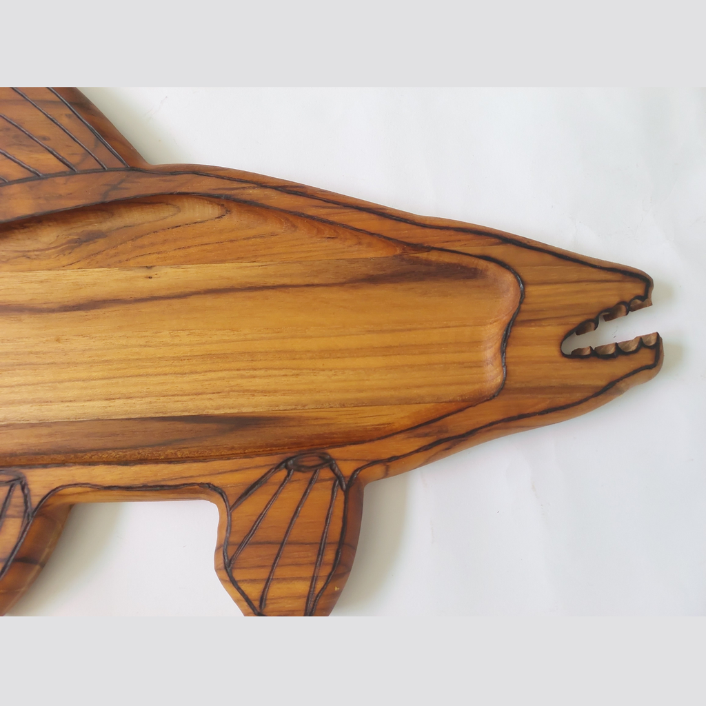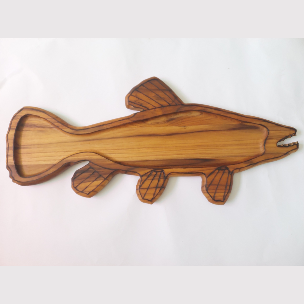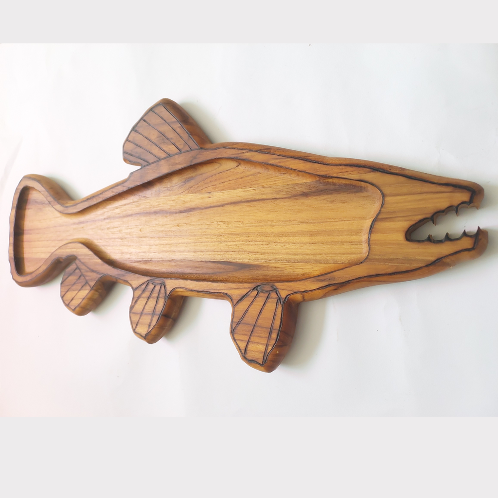 A Petisqueira DFISH une o melhor do design artesanal com o amor pela pesca esportiva. Produzida em madeira nobre de 50 cm, com gravações feitas à mão e acabamento tratado com cera de abelha e óleo mineral, ela traz um toque rústico, natural e elegante à sua mesa.